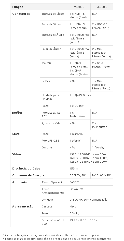 - Alta qualidade de vídeo - até 1600x1200 @ 60Hz em 150m